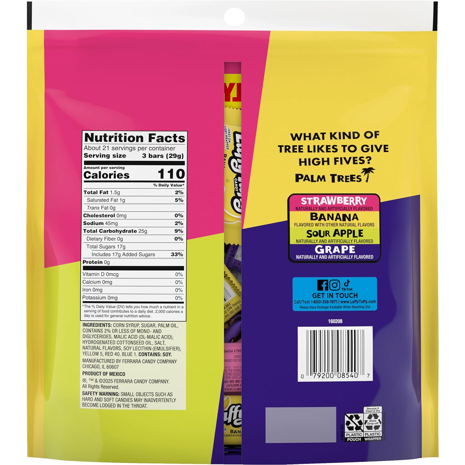 - HAVE A LAUGH WITH LAFFY TAFFY: Connect with friends and family through a variety of fruity flavors and light-hearted jokes on every individually wrapped candy treat. Laffy Taffy. Deliciously funny